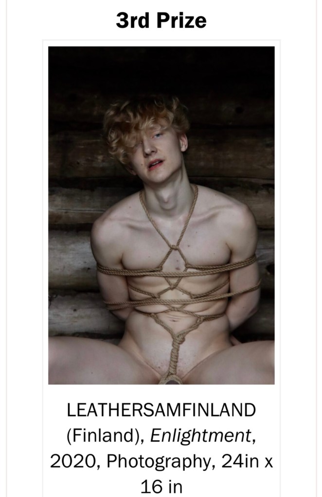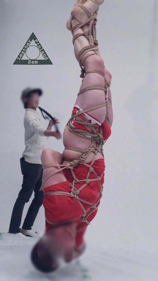 Inside the structure he approaches a young man who has found himself trapped in a web of vibrant red ropes. Bound tightly, the ropes restrict his movement, his every sense shrouded in helplessness and vulnerability. As the masked man approached he struggles against the restraints and mixed sensations arises within him.