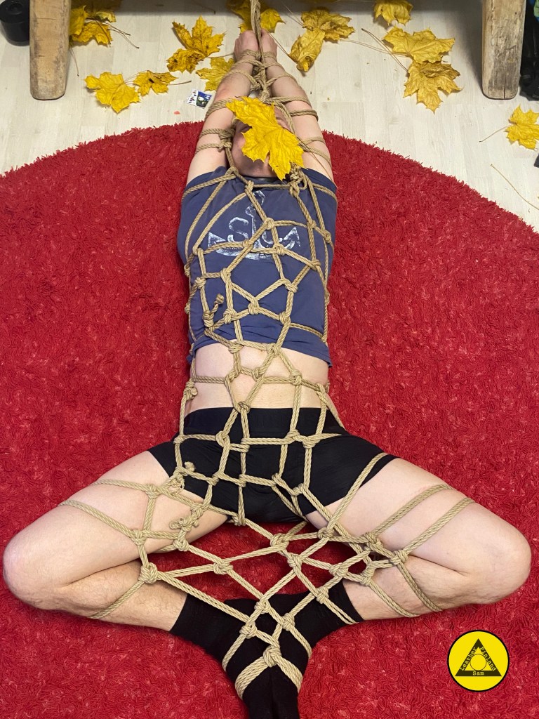 His sensations become filtered, numbed, as if his perception melds with the the ropes that bind him. The world around him takes on a different shape, its complexity reduced to a singular focus on the sensations shivering through his restrained body.